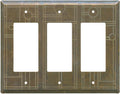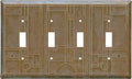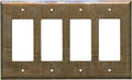 The copper switchplates have been tarnished to warm, aged hues, each with a unique patina -- no two are alike since they each react differently during the tarnishing process. All switchplates are protected with all-natural beeswax, which creates a 'living' finish that will slightly darken over time.